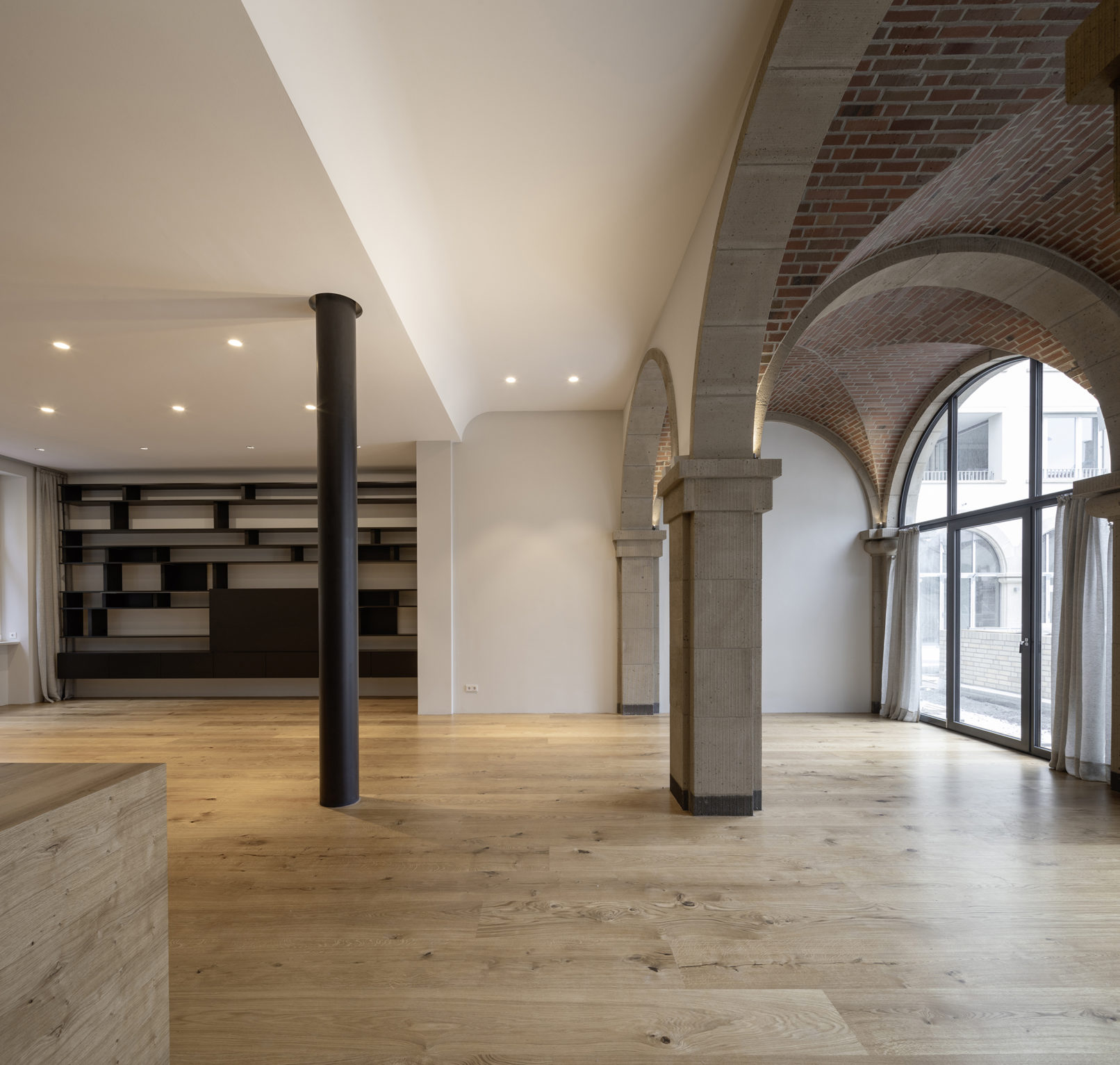Die bedachtsame Auseinandersetzung mit dem Bestandsgebäude und dessen Eigenheiten war eine besondere Herausforderung. So sind einzigartige Wohnformen entstanden, die auf die klösterliche Vornutzung verweisen. Jeder der 23 Wohnungen hat auf diese Weise seinen unvergleichlichen Charakter erhalten und das Gebäude gleichzeitig seine Adresse in der Altstadt bewahrt.