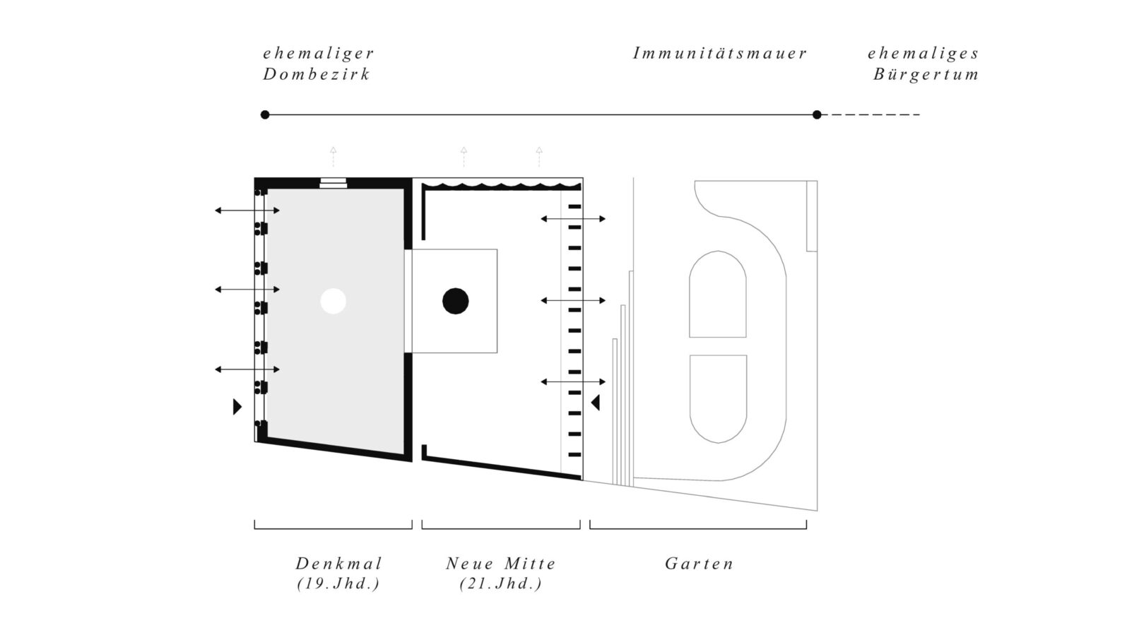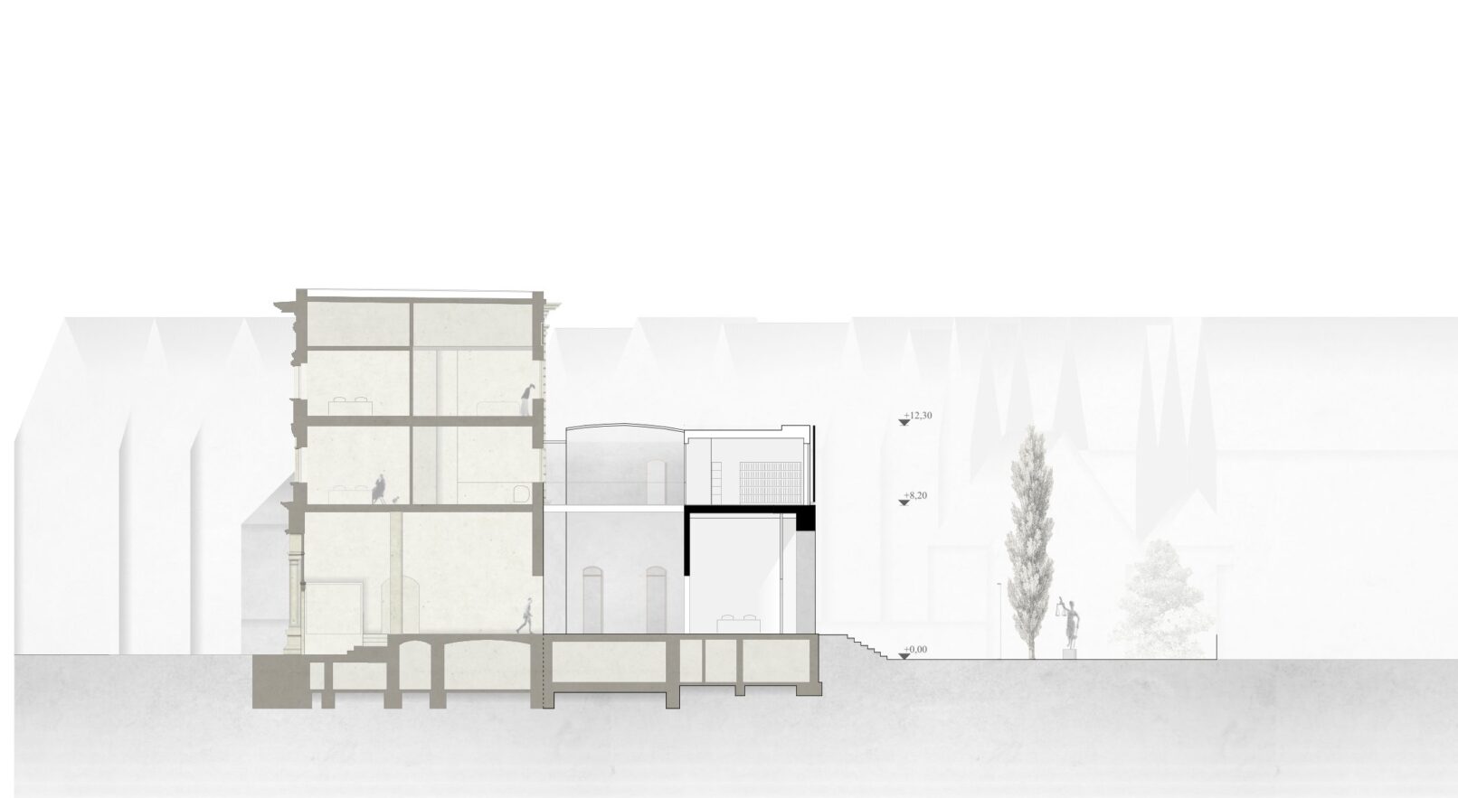 Unser Entwurf für den Erweiterungsbau basiert auf kulturellen und mathematischen Grundsätzen des Haupthauses. Funktionalität, Orientierung und der öffentliche Dialog prägen die Geschosse und Fassaden.