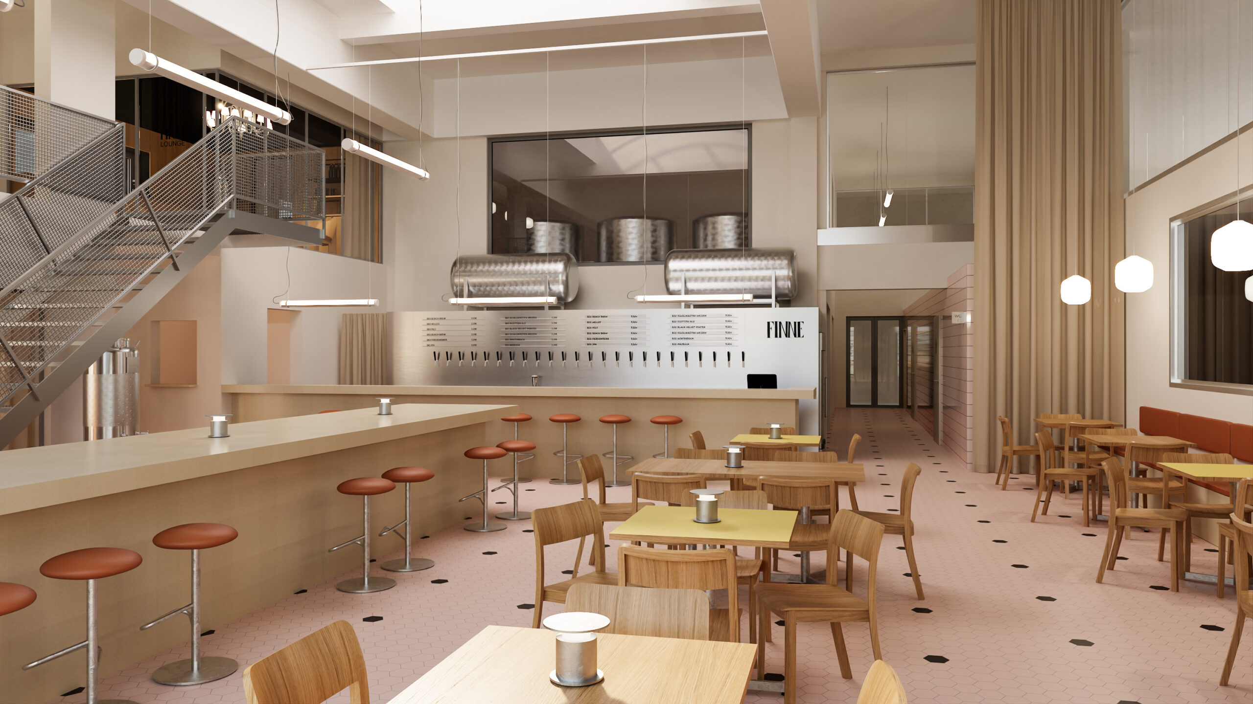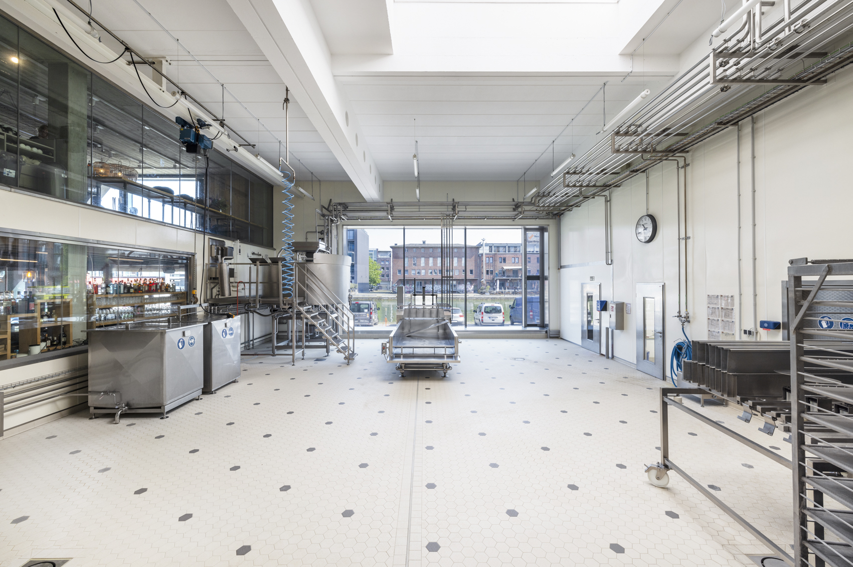 Die bisherigen Produktionsräume werden erweitert und hochwertig ausgestattet. Im hinteren Bereich entsteht eine sichtbare Brauereiproduktion, im vorderen Teil – mit Blick auf das Wasser und den Kreativkai – ein offener Gastraum, der zum Verweilen und Verkosten einlädt.