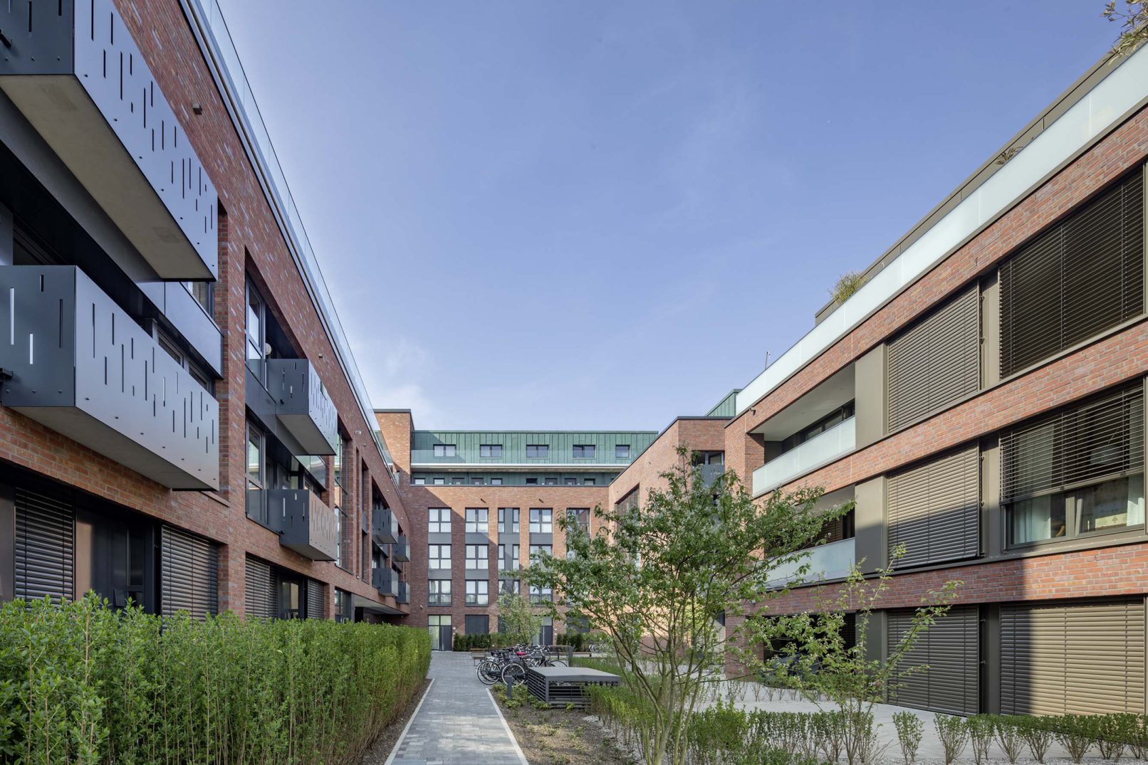 Die orthogonale Stellung der umgebenden Bebauung wurde beibehalten und im Bereich des Rings mit einem Versatz aufgenommen. Die innere Bebauung wird durch einen durchlässigen Eingangsbereich mit gestalteter Grünanlage erschlossen.