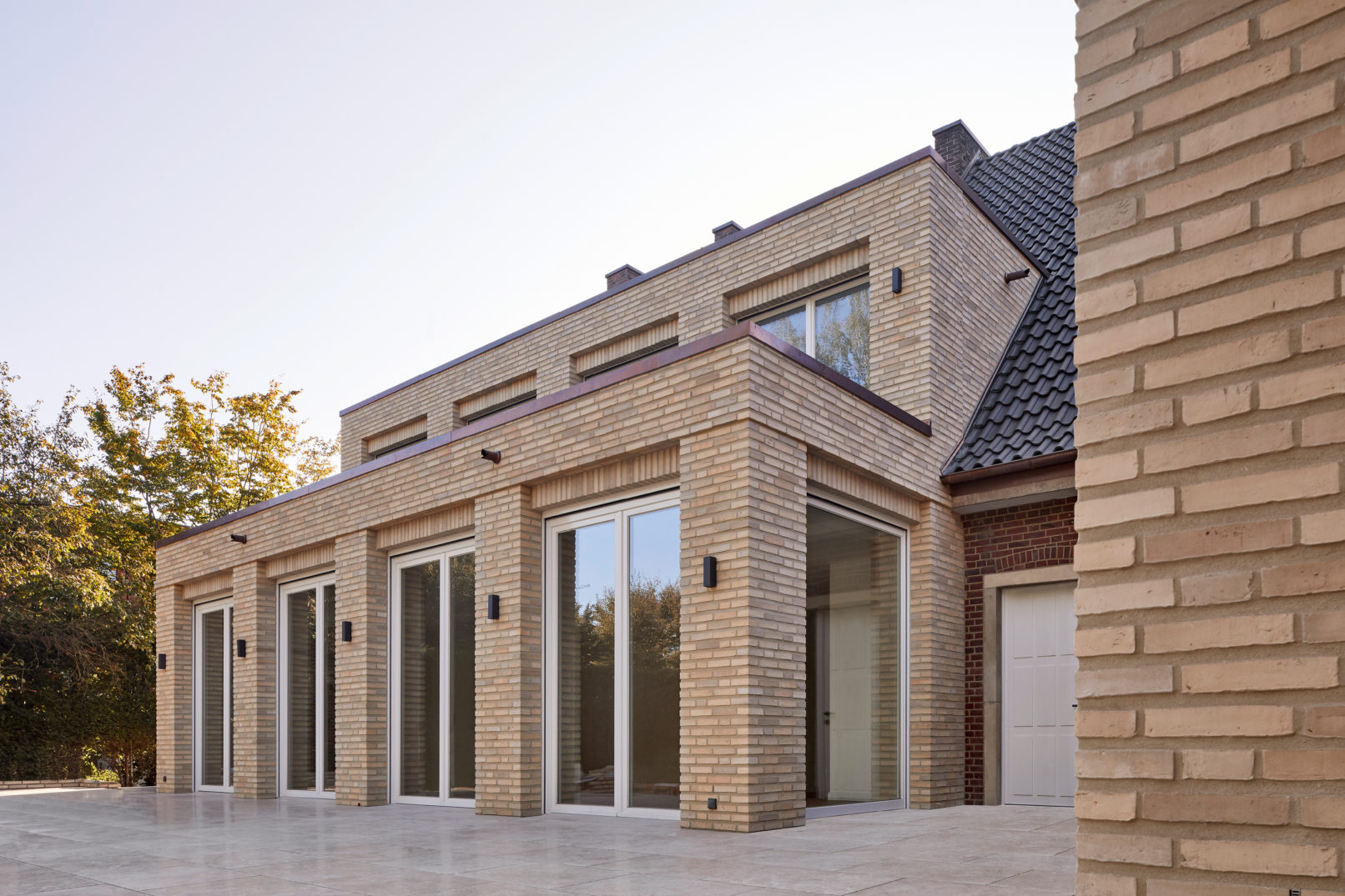 Der Entwurf basiert im Besonderen auf der Lesbarkeit von Alt und Neu und spielt mit der spannungsvollen Vereinigung beider Teile. Stellvertretend für den zeitgenössischen Erweiterungsbau wurde ein heller Wasserstrichziegel im Dünnformat von der Janinhoff Klinkermanufaktur gewählt. Übergänge zum Altbau wurden sensibel gestaltet, um eine Verwandtschaft der Gebäudeteile zu erzeugen.