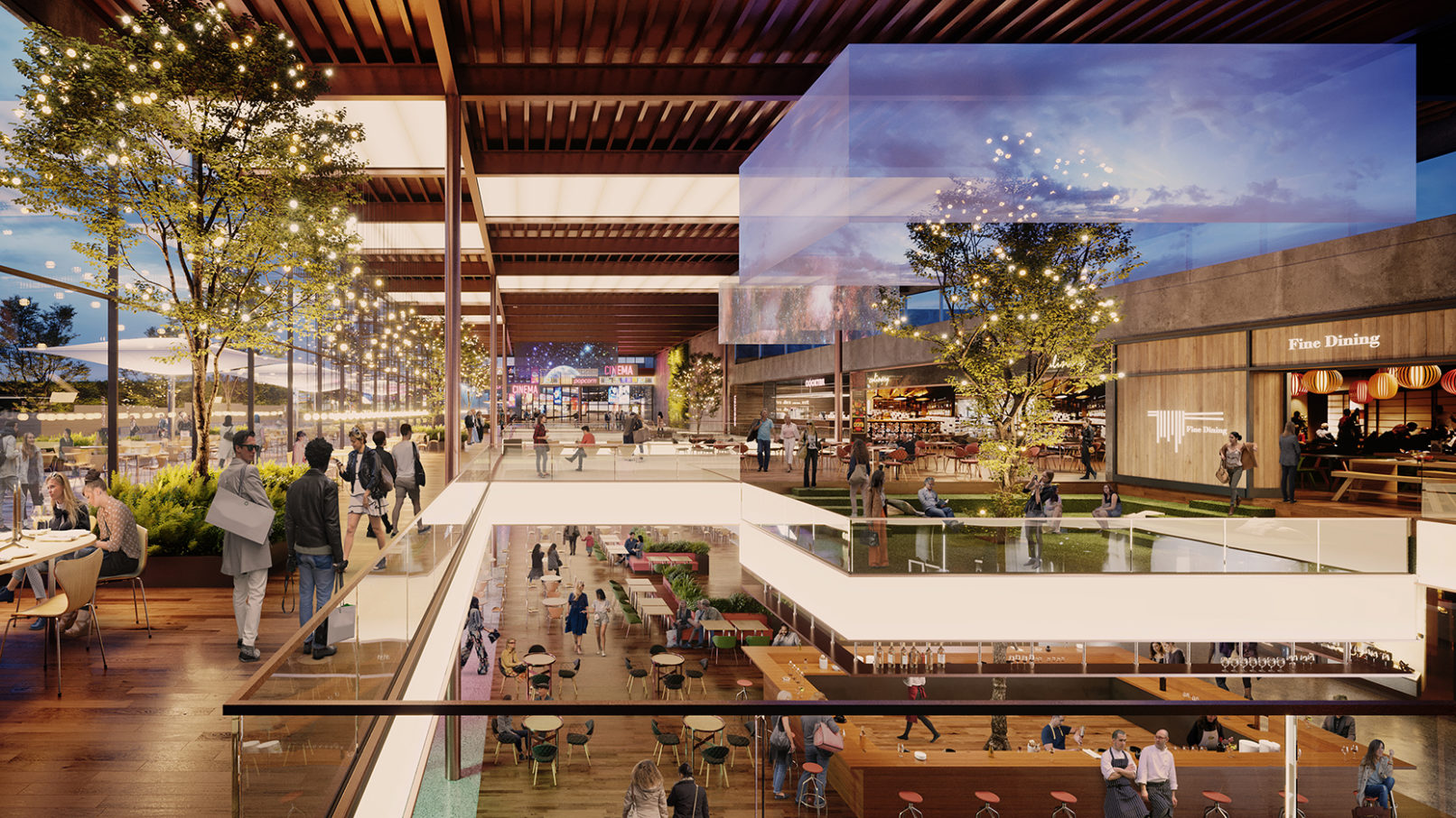 Neben der neuen Mallgestaltung werden Eventplätze in der Mall geplant, welche die Themen Marktplatz, Sporttribüne, Fashion und innovatives Gastronomiekonzept unter einem Dach erlebbar machen. Die erschaffenen Anziehungspunkte werden durch neue Eingänge vom modernisierten Dachparken aus erschlossen und durchlebt. Die neue Architektur schafft eine hohe Aufenthaltsqualität, welche den Besucher zum Verweilen im „Wohnzimmer des Ruhrgebietes“ einlädt.